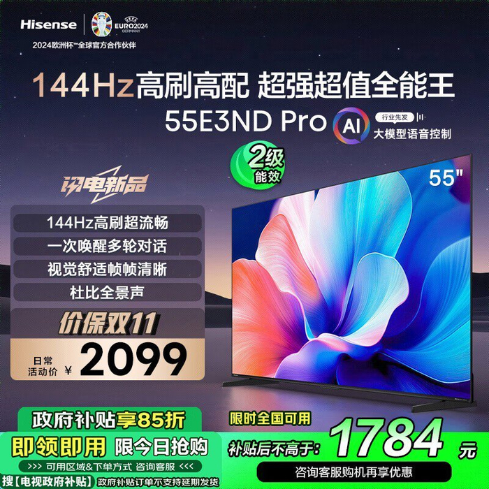 革新体验:144Hz海信电视55E3ND Pro,AI语音操控,超薄美学仅2199元起