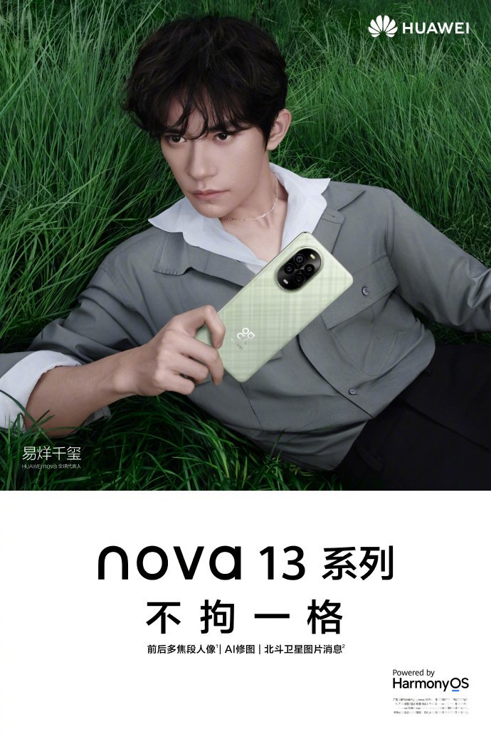 10月15日,华为终端官微在社交媒体发文,正式预热华为nova13系列手机,该产品有绿色和白色两款配色,后壳均有网格状纹理。此外,宣传海报还显示,华为nova13系列手机拥有前后置多焦段人像、AI修图、北斗卫星图片消息功能等卖点。