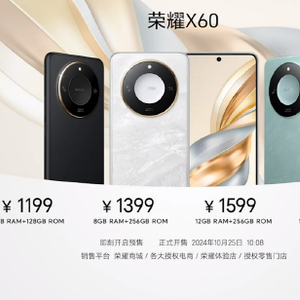 荣耀X60 Pro提供了天海青、玄武灰、燃橙色、典雅黑四种配色可选。8GB+128GB版售价1499元,8GB+256GB版售价1699元,12GB+256GB版售价1999元,12GB+512GB版售价2299元;荣耀X60拥有月影白、海湖青、典雅黑三种配色。8GB+128GB版售价1199元,8GB+256GB版售价1399元,12GB+256GB版售价1599元,12GB+512GB版售价1799元。