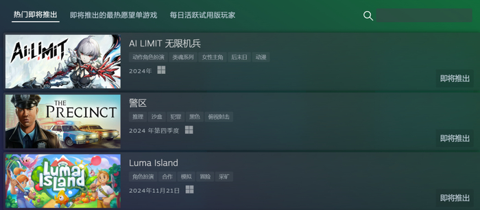 在新品节上推出面向所有玩家的新Demo之后,《无限机兵》也是已经连续两天蝉联“热门榜”首位。