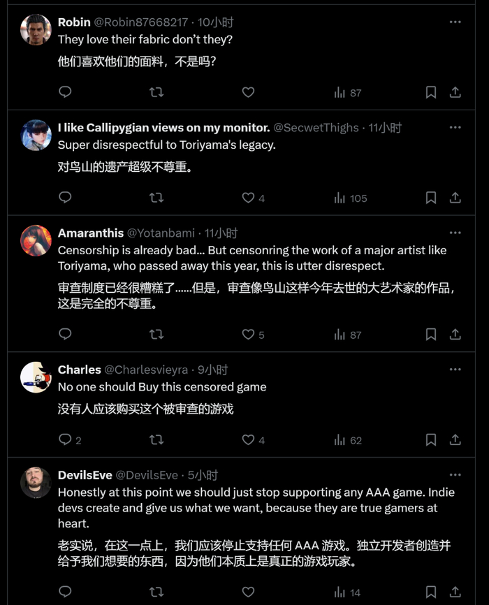 这一改动在玩家间自然也是反响强烈,谴责声到了“如果鸟山明还活着,你们敢这样动他的作品吗?这是对死者的不尊重”的地步。