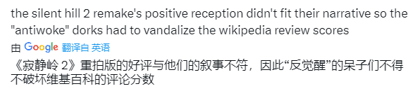 但这是谁干的?又为什么要这么做?这两个问题变成了《寂静岭2》海外社区的讨论焦点之一,“反觉醒主义者”(Anti-Woke)则被认为是最有嫌疑的群体。