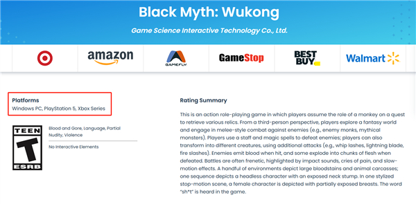 快科技10月20日消息,近日,《黑神话:悟空》通过了ESRB(娱乐软件分级委员会)的评级的“T”评级(青少年级别)。