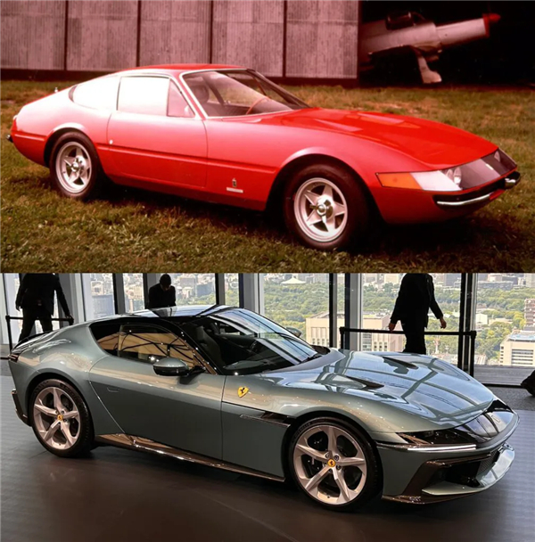 可从 812 Superfast 的继任车型 12 Cilindri 开始,也不知道法拉利是为了顺应现在的复古潮流,还是真就觉得 365GTB/4 这台车真就代表了法拉利设计语言的精髓,就非得在新车上体现出长条灯 + 直线曲线混用的元素。