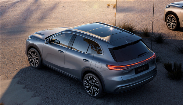 长宽高为4740*1905*1685mm,轴距为2755mm,保留了银河系列经典的双腰线设计,新车车尾造型与银河E5区别较大,牌照框移至后尾门处,贯通的灯带非常具有辨识度,“旭日东升”贯穿式尾灯做到了首尾呼应。