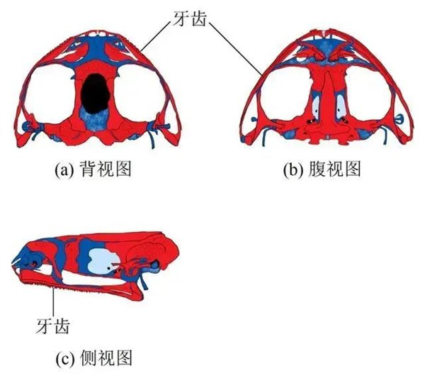 灰树蛙头骨结构(上颌部位的牙齿清晰可见)