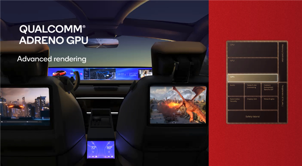 在车机显示和游戏画面上,骁龙座舱至尊版平台和骁龙Ride至尊版平台都配备面向汽车应用设计的Adreno GPU。