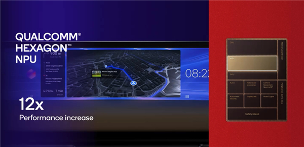 骁龙座舱至尊版平台中集成了最新的NPU,属于专用AI处理器,其性能相比骁龙8125提升至最高12倍。