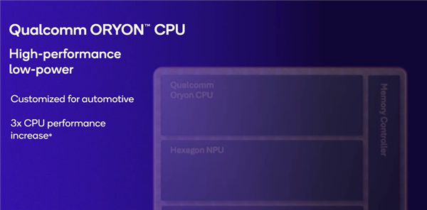 同时,Oryon CPU具有专为汽车应用打造的内核,可使车辆的智驾体验,在性能、能耗和便利性上实现智能优化。
