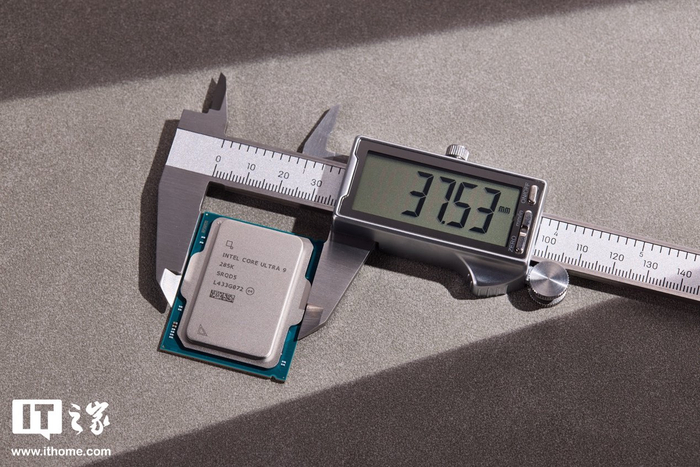 在测试之前,IT之家实测了酷睿 Ultra 9 285K 的尺寸和重量数据,它的长和宽分别为 37.5mm 和 45mm,厚度为 4.9mm。