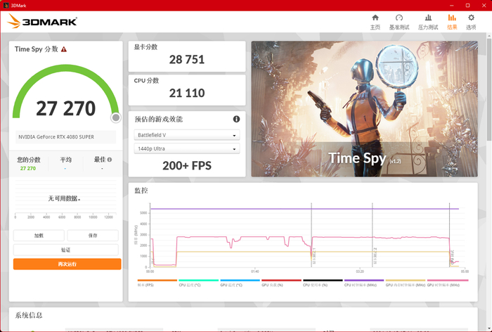 第四款是《赛博朋克:2077》,选择 1080P 分辨率 + 超级画质 + 预设运行游戏自带基准测试: