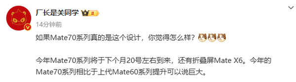 传华为Mate X6将在11月20日前后发布 起售价1.3万?