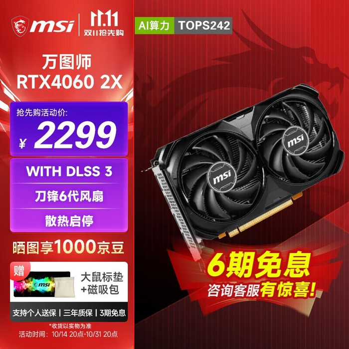 微星 RTX 4060Ti 显卡限时优惠,售价2254元!