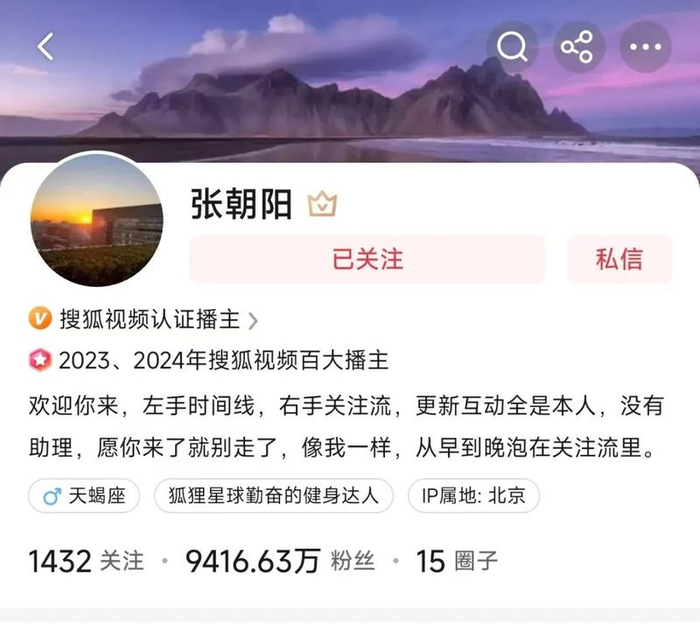 张朝阳在搜狐视频上拥有超过 9400 万粉丝