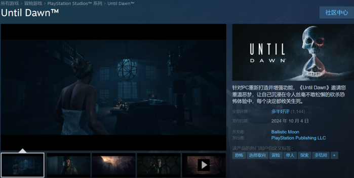 这个月初的时候,曾由PS独占的知名恐怖游戏《直到黎明》推出了重制版,并登上了Steam。