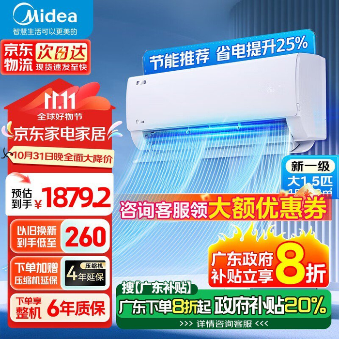 美的酷省电系列KFR-35GW/N8KS1-1 壁挂式空调超值抢购价1671元