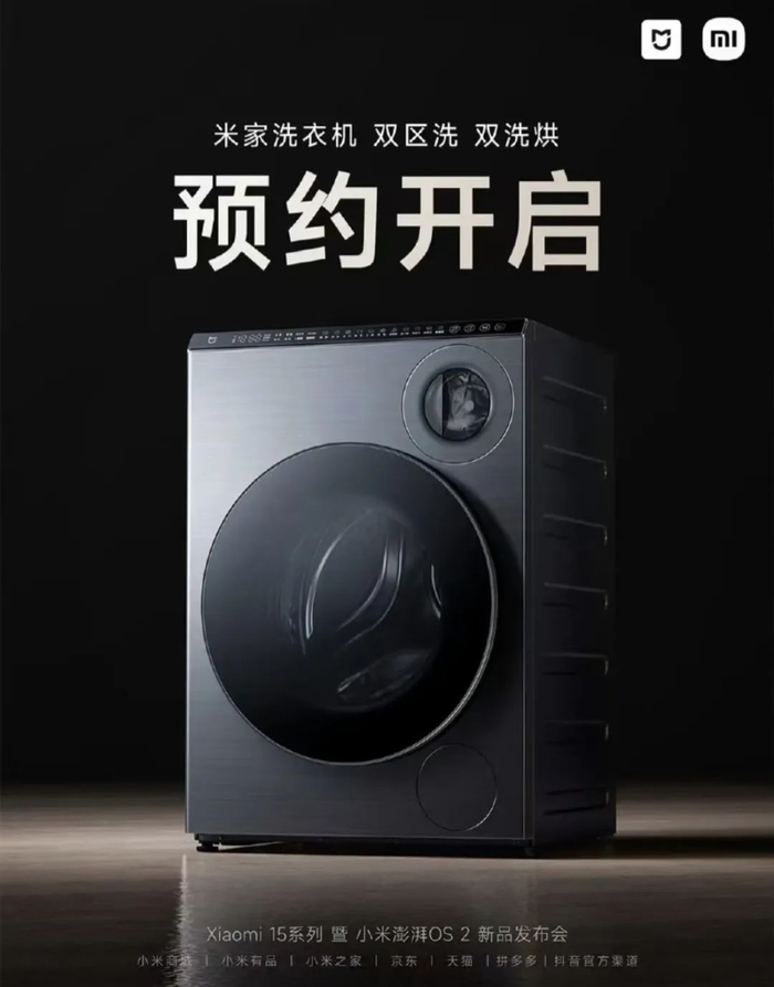 小米发布会上,双分区、双洗烘的米家洗衣机即将发售。大小筒单独运行,大筒常规10KG容量,可以洗衣服、被单等。小筒大概是5条内裤的容量,还带有杀菌功能。