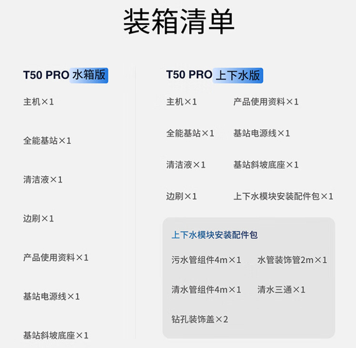 IT之家附科沃斯 T50 PRO 扫拖机器人各版本亮点、产品参数及装箱清单如下: