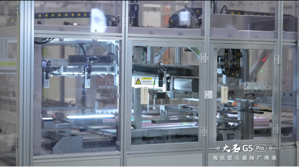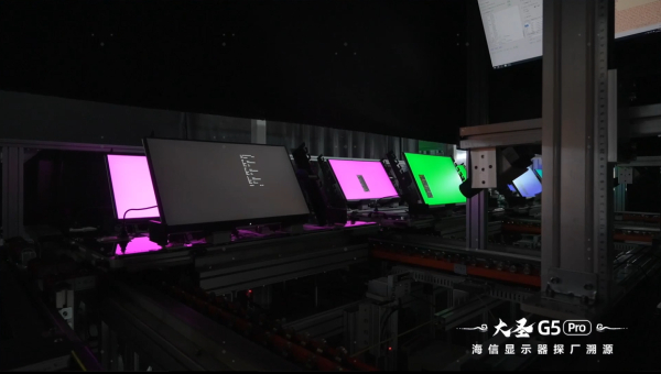 在生产环节中,大圣G5 Pro严苛的标准不仅体现在对产线的智能化要求,也体现在在对面板品质的精挑细选——不同于行业合格标准的5个暗点,大圣G5 Pro仅挑选暗点<1、堪称完美的超A+屏幕。利用友达自主开发的全自动画检设备,海信大圣G5 Pro的屏幕会在AOI暗房内进行检验,以像素级标准甄选符合要求的屏幕。
