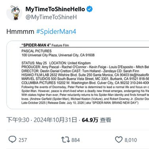 泄露文件显示《蜘蛛侠:崭新的一天》将于 2026 年 7 月 10 日上映,不过IT之家此前报道,有消息称该电影将于 2026 年 7 月 24 日上映。