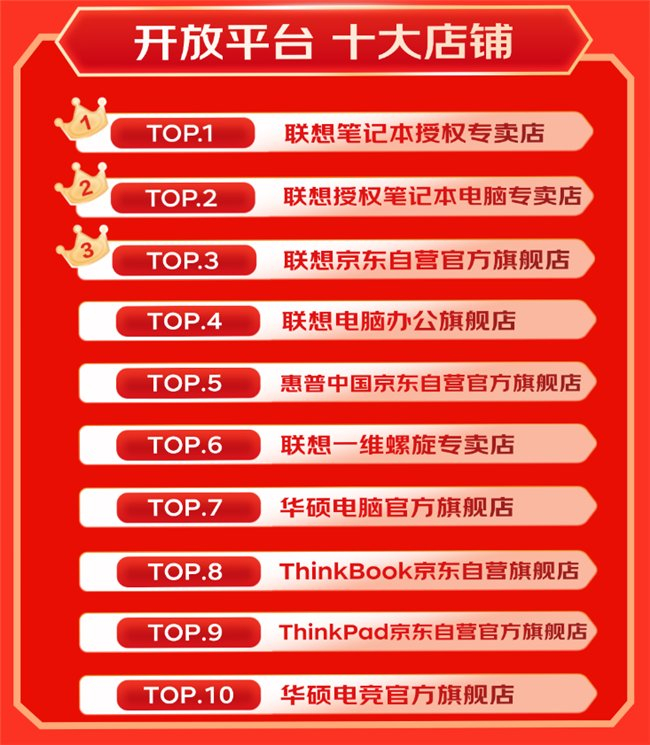同时,更多商家店铺也在京东11.11的推动下实现了开门红的生意爆发。联想笔记本授权专卖店、联想授权笔记本电脑专卖店、联想京东自营官方旗舰店等成为京东11.11开放平台十大店铺榜单前三名。还有更多店铺也迎来了成交额增长喜讯,在接下来的京东11.11期间也将获得更高质量发展。