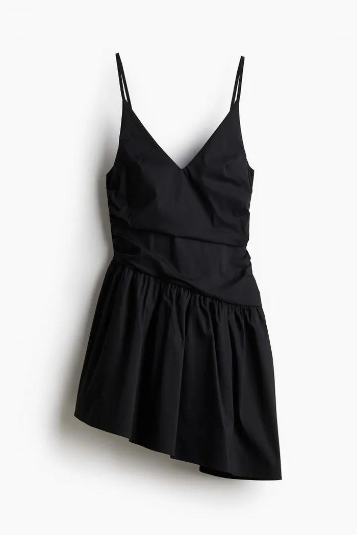 但是整整齐齐的暗黑女巫未免太过死板。既然要玩反差,西装里的裙子就需要一点搞怪细节。不对称连衣裙一侧添加褶皱,适当露出腿部,摇滚少女的鬼马气质藏不住,原来暗黑女骑士皮下是潮酷时髦精。