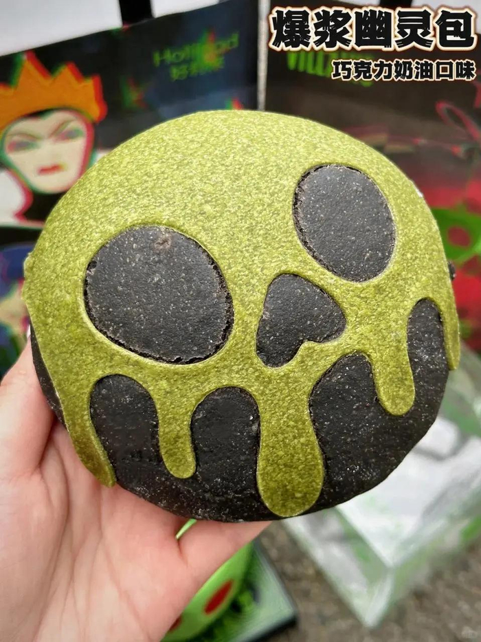 拥有超绝可爱小表情的“爆浆幽灵”面包,面包体与内层夹心奶油都是黑巧克力风味。这一次不玩反转,一“黑”到底!