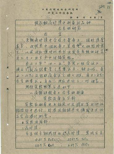 20世纪60年代,上海冶金所关于从包钢高炉渣中制备新品种合金研究的报告。