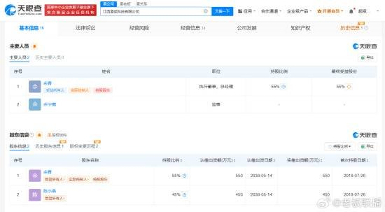 公开资料显示,小鱼名叫余宁葳,天眼查显示其在江西蓝保科技有限公司担任监事。