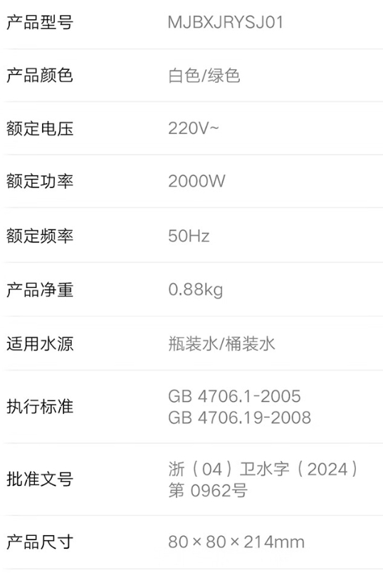 此外,该产品采用不锈钢内胆,无尾抽真空技术,拥有双层防烫功能;配备水瓶转接头和 0.5 米抽水软管,适配大多数 330~596 毫升瓶装水;复合精瓷加热系统,水流经陶瓷管道被迅速加热,3 秒出热水。