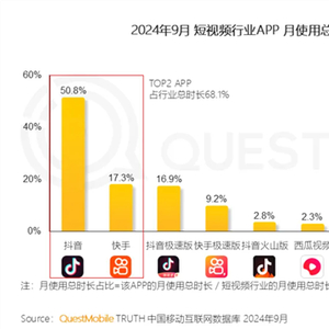 值得注意的是,在众多参与者中,抖音和快手两大平台表现尤为突出,它们共同占据了整个市场近七成的用户时长份额。
