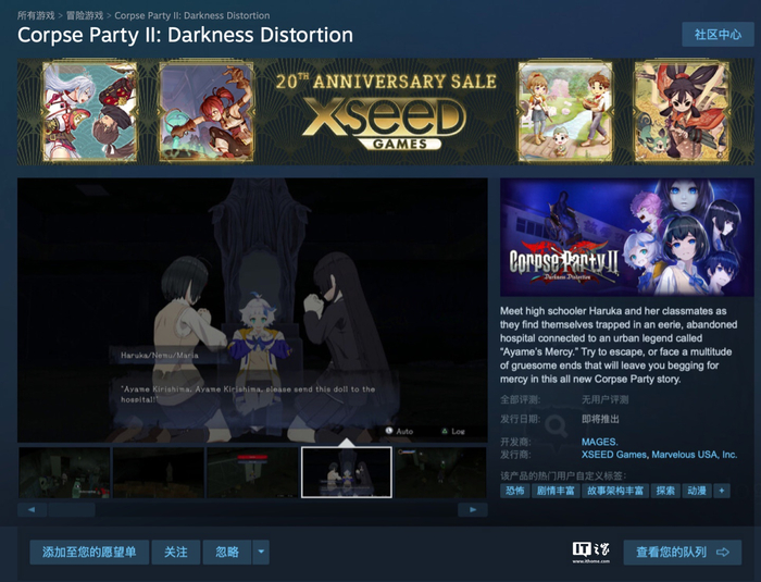 IT之家 11 月 16 日消息,开发商 MAGES 宣布旗下经典恐怖游戏《尸体派对》新作《尸体派对 2 Darkness Distortion(コープスパーティー II Darkness Distortion)》现已上架 Steam。