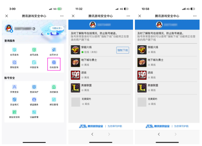 腾讯游戏安全中心微信公众号点击【自助服务】-【在线查询】-【强制下线】