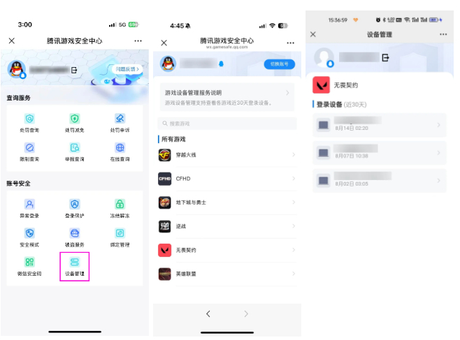 腾讯游戏安全中心微信公众号点击【自助服务】-【设备管理】