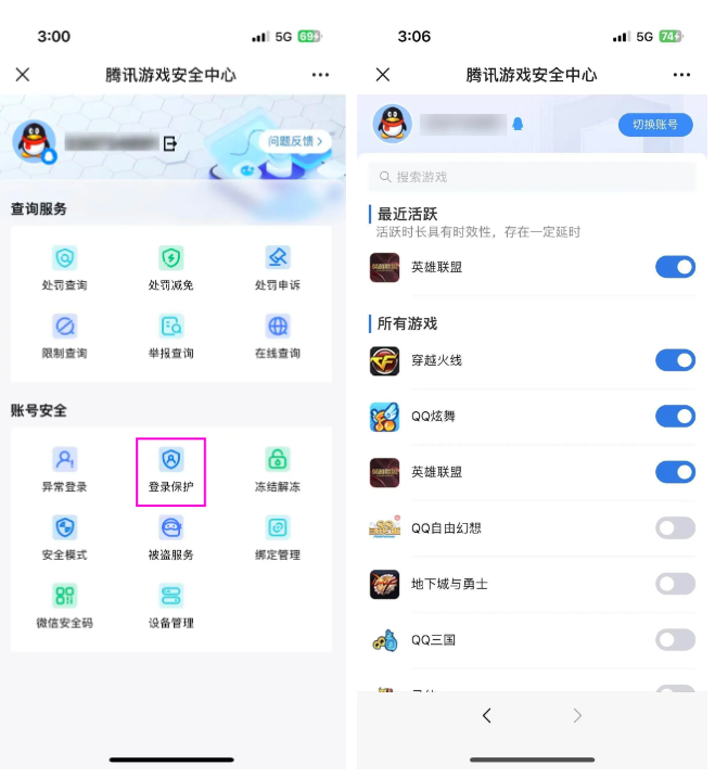 腾讯游戏安全中心微信公众号点击【自助服务】-【登录保护】