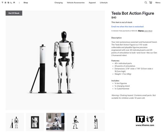 特斯拉 Optimus 机器人模型上架后一天内售罄,售价 40 美元