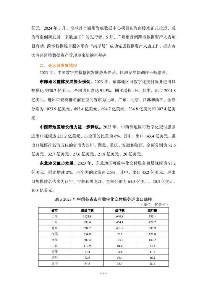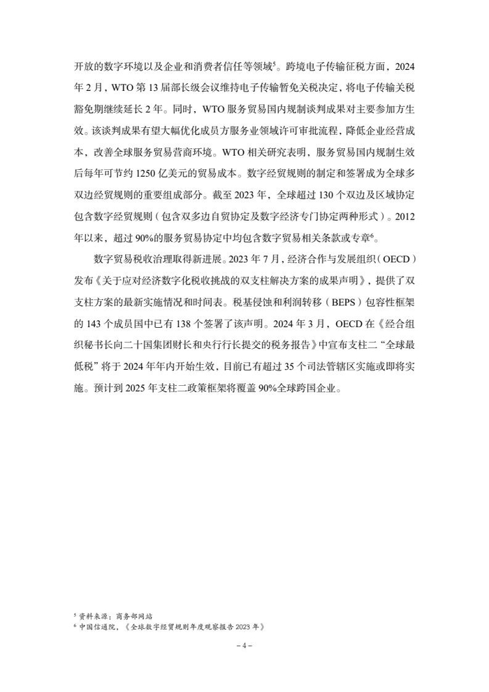 据世界贸易组织(WTO)统计,2023年,全球数字化交付服务出口额4.25 万亿美元,同比增长9%,占全球服务出口的54.2%,规模再创历史新高。2019—2023年,全球数字化交付服务出口年均增速达10.8%,高出同期服务出口增速 4.9个百分点。