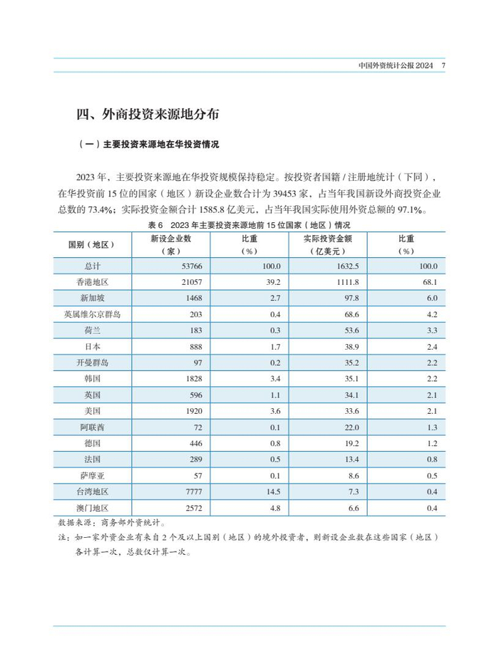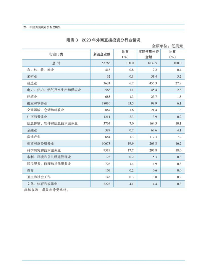 商务部:2024年中国外资统计公报