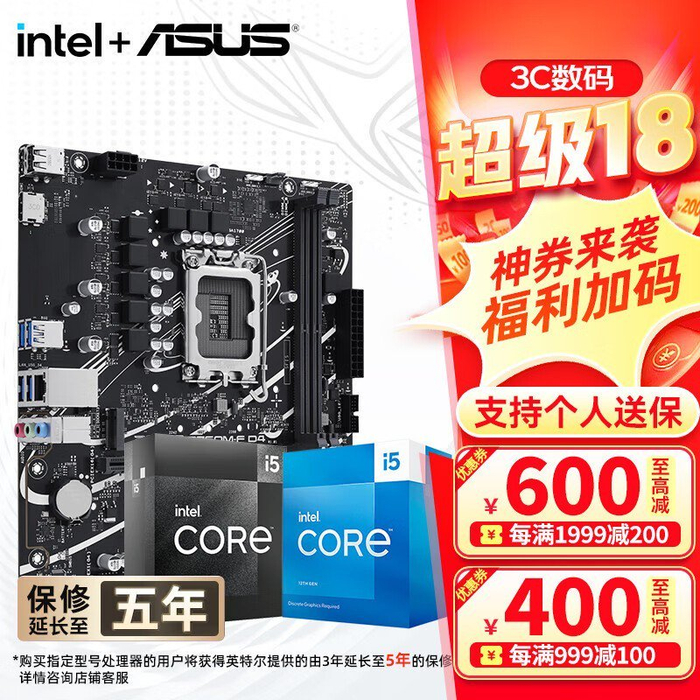 华硕H610/B760主板套装特价1269元!