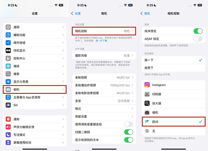 设置方式也很简单,首先下载好跃问 App,接着打开「设置-相机」,在相机设置中的相机控制选择「跃问」,然后你的 iPhone 16,就能像苹果发布会上那样使用 AI 了。