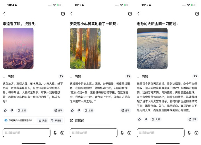 每次拍摄后,并不只是被动等待你的问题,它还会根据图片信息,主动给出问题建议,哪怕它的好心都没问到点子上,你还能主动出击和他连续对话。