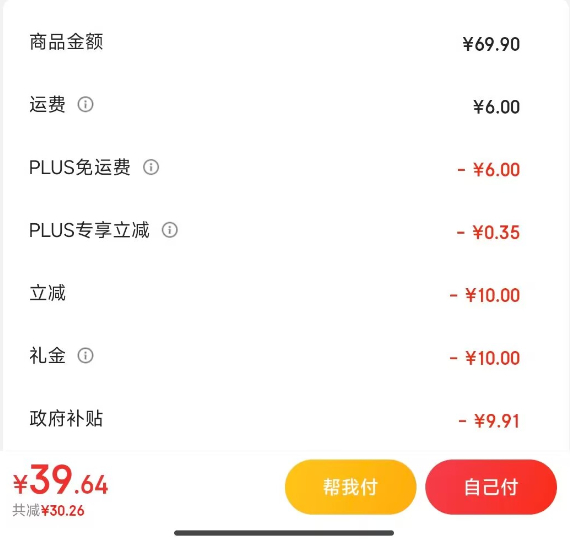 现下单立减 10 元 + 可领 10 元首单礼金,叠加 8 折国补后,仅需 39元即可入手。