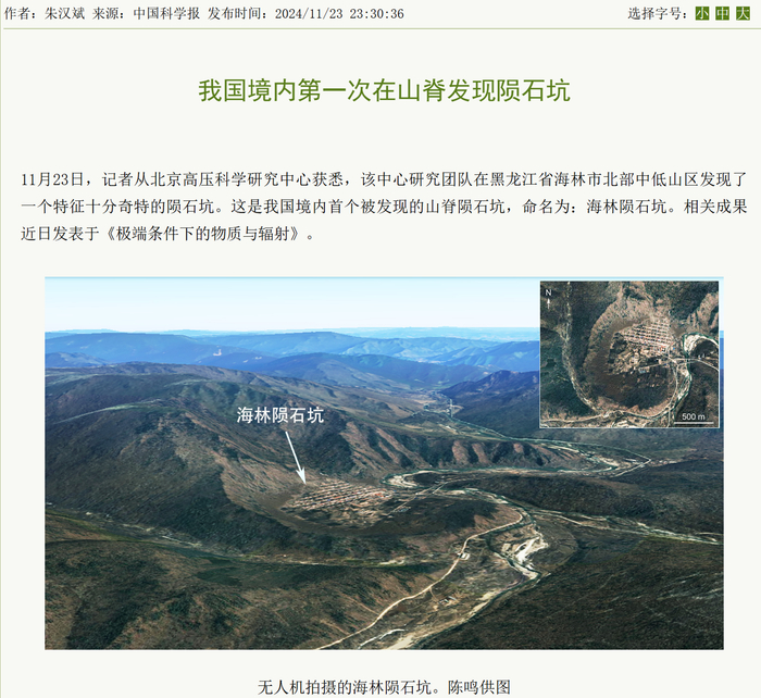 我国境内首次在山脊发现陨石坑,最大直径 1360 米