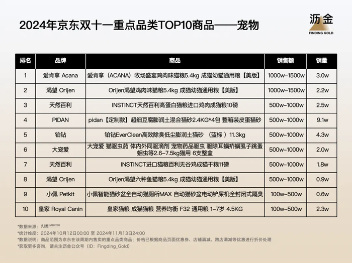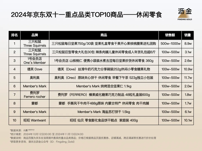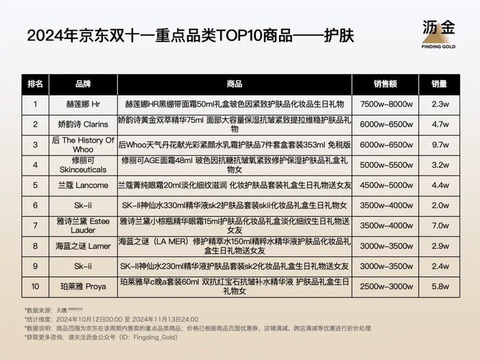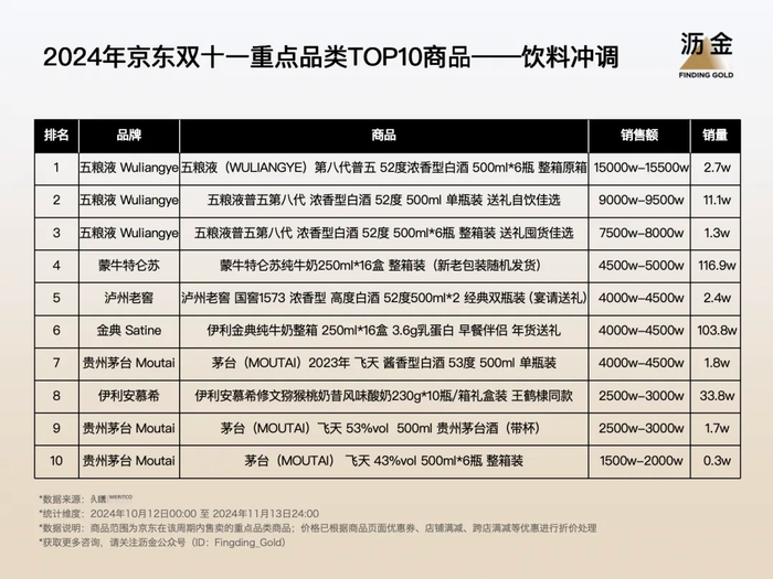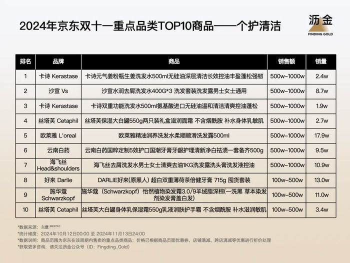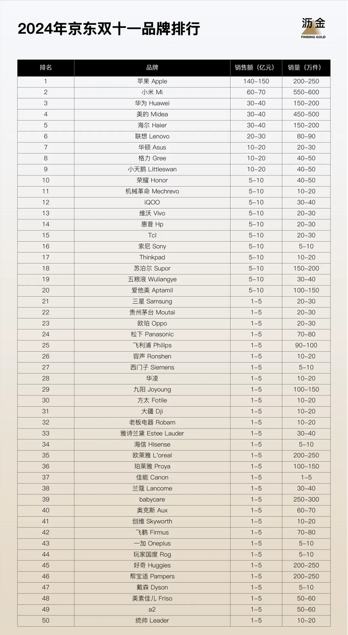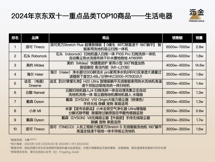 沥金联合久谦中台对京东双11的战绩(10月12日 00:00至11月13日 24:00)进行了抓取分析,以下为本次京东双11的TOP 50商品,16个重点类目TOP 10商品榜单及分析: