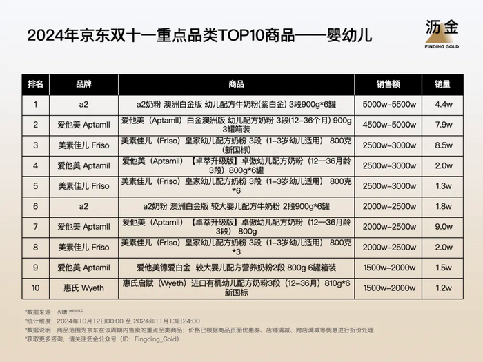 TOP10商品榜被婴幼儿奶粉霸榜,3段奶粉占比最高,可见1-3岁幼儿有强奶粉需求,且大促节点进一步释放了婴幼儿刚需奶粉的囤货需求。