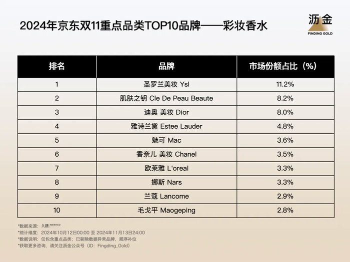 TOP10品牌榜中,YSL以11.2%的市场份额领跑,CPB市场份额扩大,超越DIOR成为第二。和去年相比,阿玛尼、卡姿兰掉榜,取而代之的是纪梵希、毛戈平。TOP10品牌榜中仅有毛戈平一个国货品牌,说明海外大牌在京东有较强的消费心智。