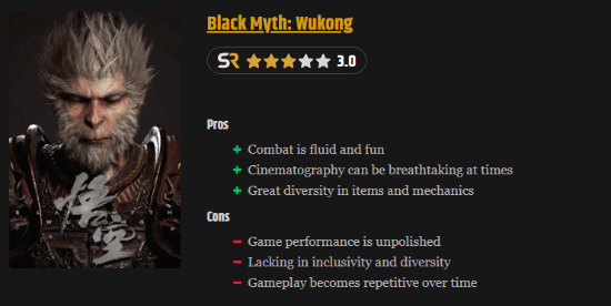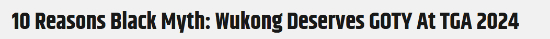 DEI媒体称《黑神话:悟空》值得年度最佳:曾因缺乏多样性给6分
