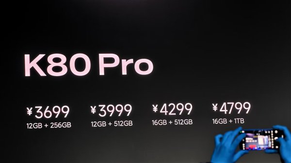 售价方面,K80 Pro 12GB+256GB售价3699元;12GB+512GB售价3999元;16GB+512GB售价4299元;16GB+1TB售价4799元。