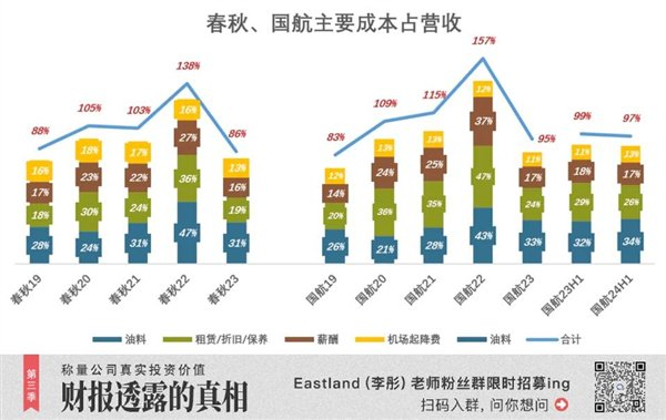 2019年,春秋用于飞机租赁/保养及折旧的成本合计26.3亿、占营收的17.8%,国航这个比例超过20%;