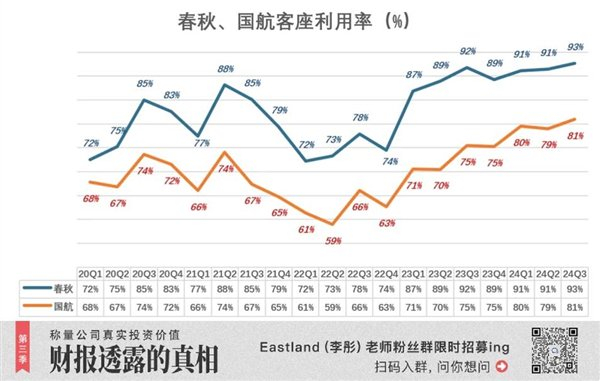 2023年到2024年9月末,运力投放出现报复性增长。这回“押对了”,客座利用率终于回到疫情前水平。